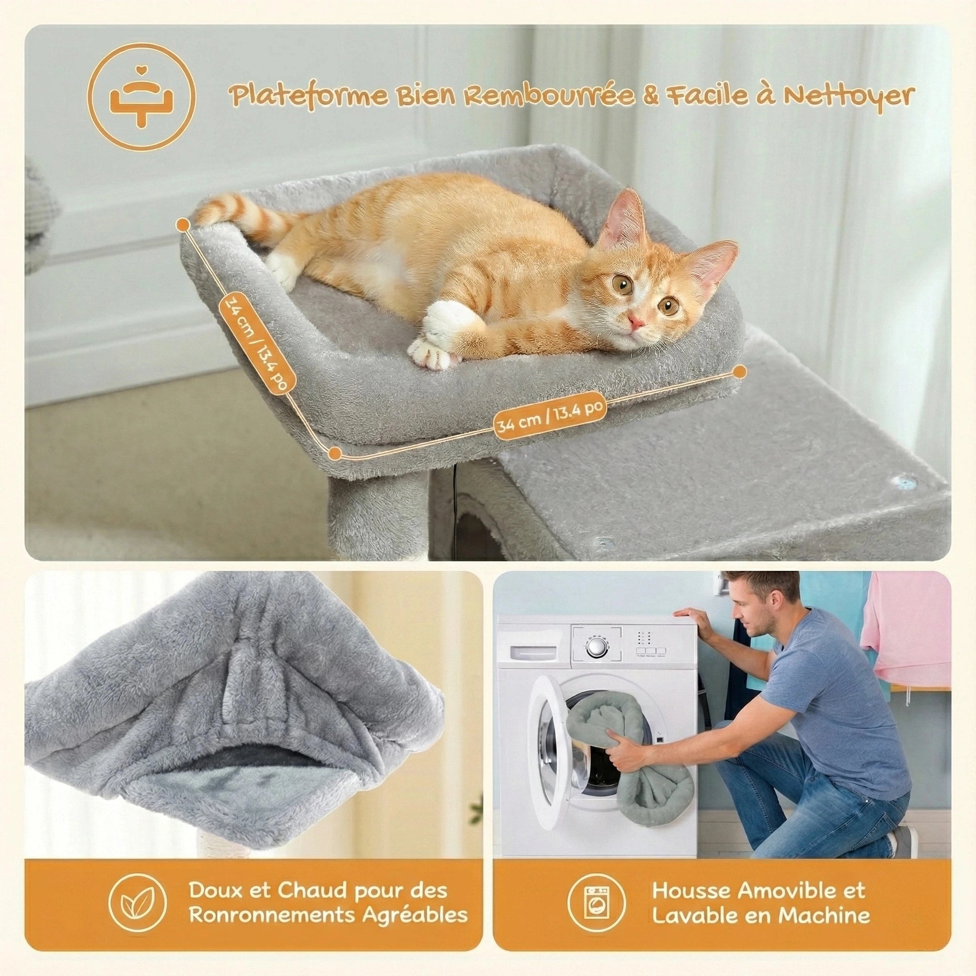 • Hygiène : Revêtement en peluche douce et structure facile à aspirer.