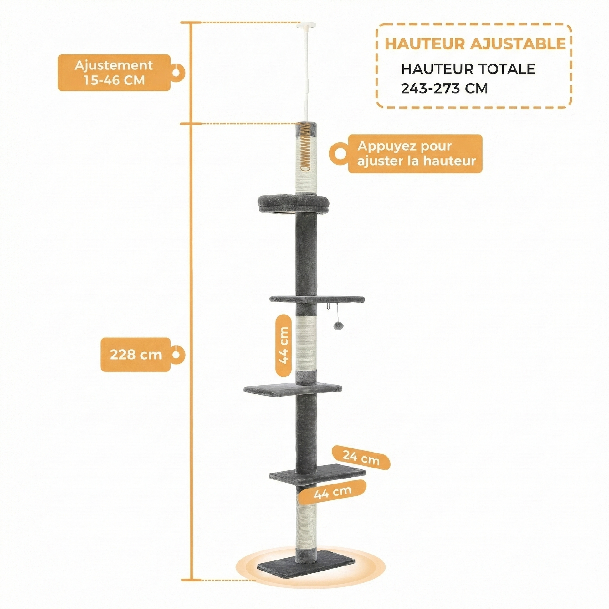 Arbre à Chat Plafond "Le Gratte-Ciel" - Ajustable (228-273cm) & Sans Perçage