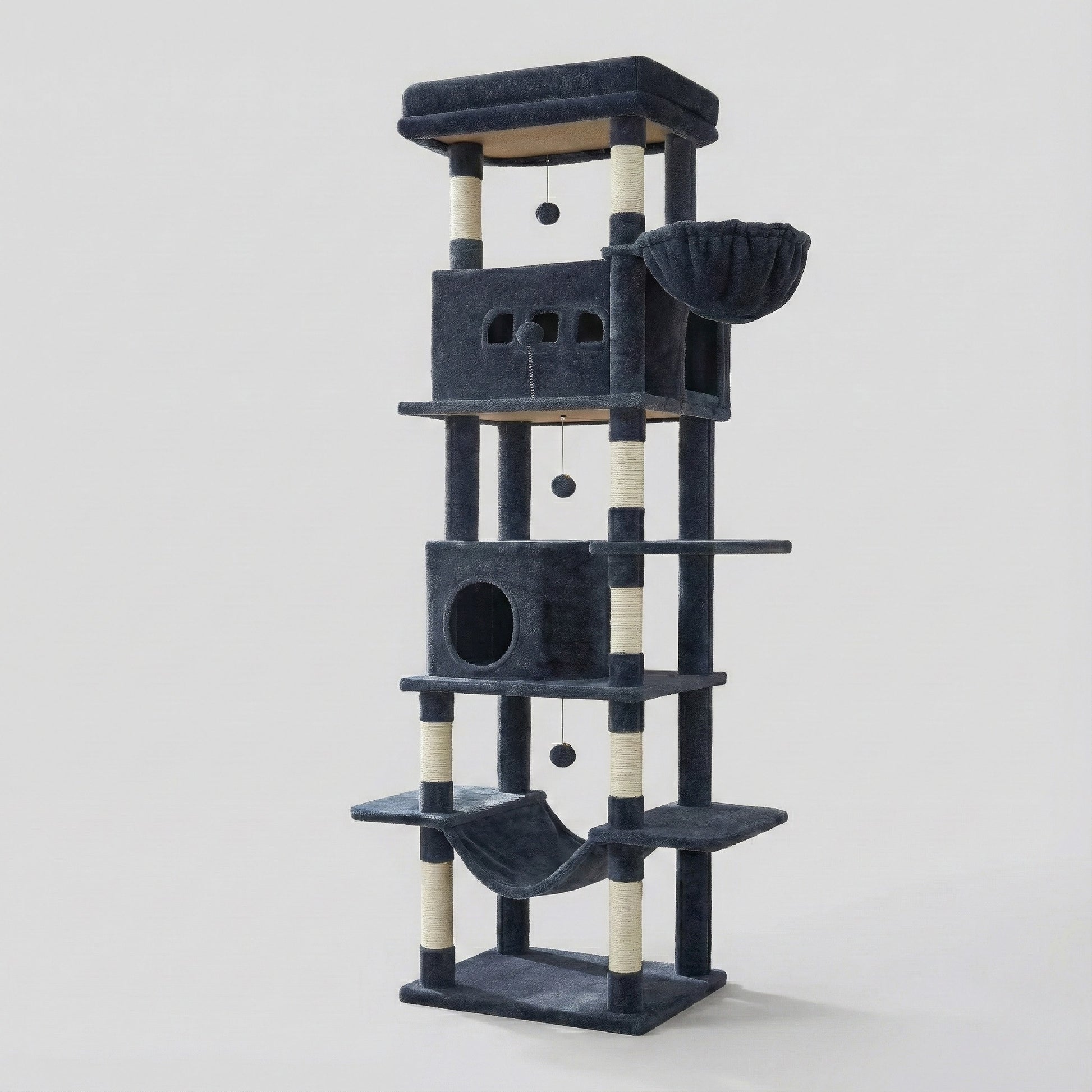 • Matériaux : Panneaux de particules haute densité, Recouvrement Peluche douce (Gris), Sisal naturel sur poteaux.